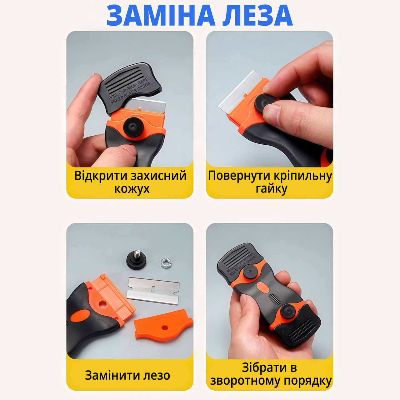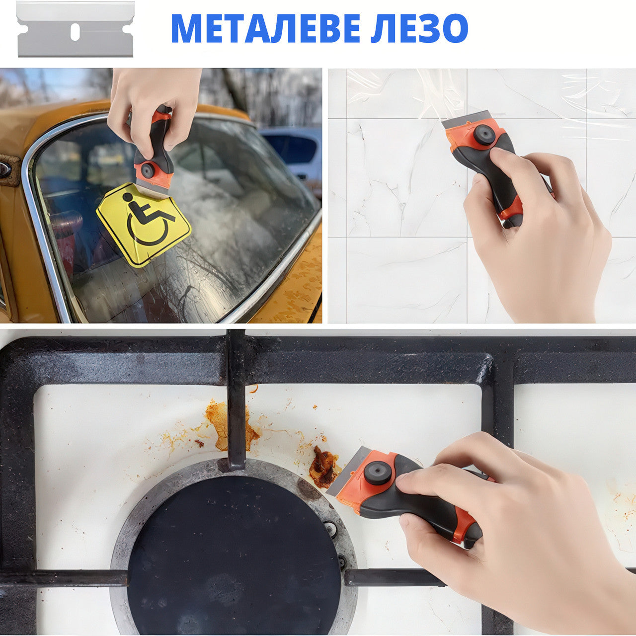 Скребок для видалення наклейок, фарби, клею та забруднень зі склокераміки, плитки, скла, варильних та інших поверхонь