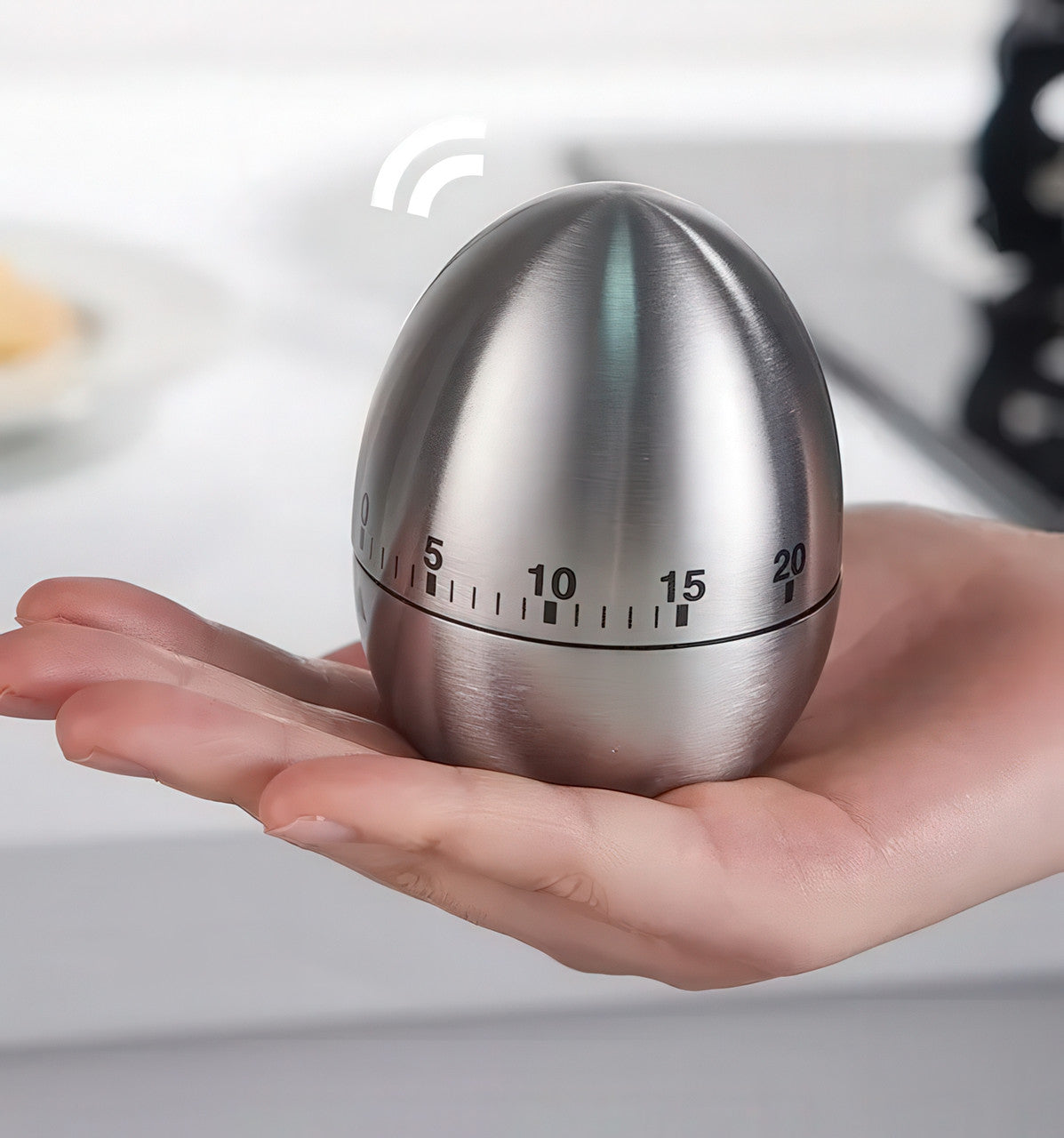 Кухонний механічний таймер у формі яйця, металевий корпус, 60 хвилин